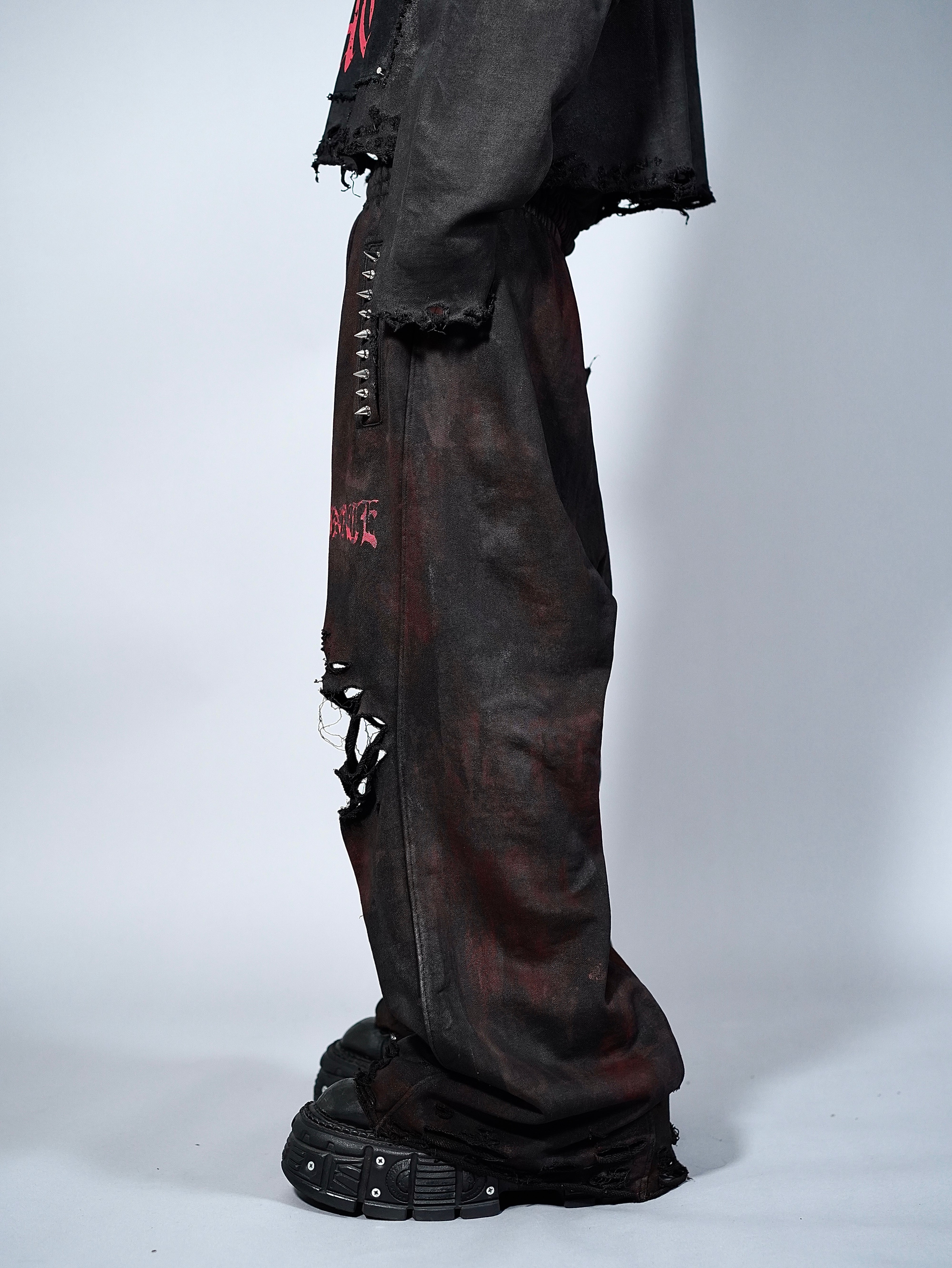 【DES'N'ATE】LOGO PRINT DYED FLARE SWEAT PANTS