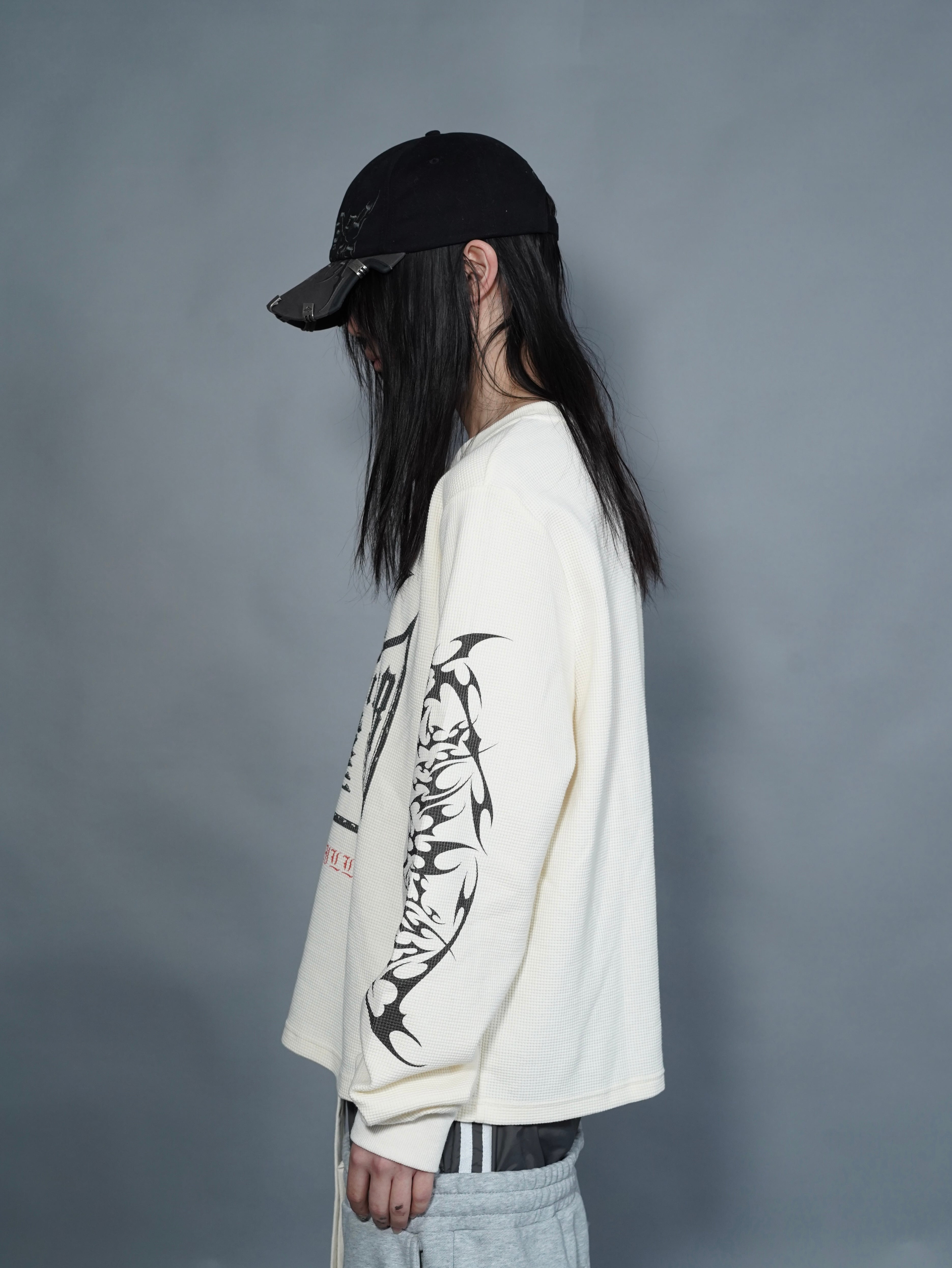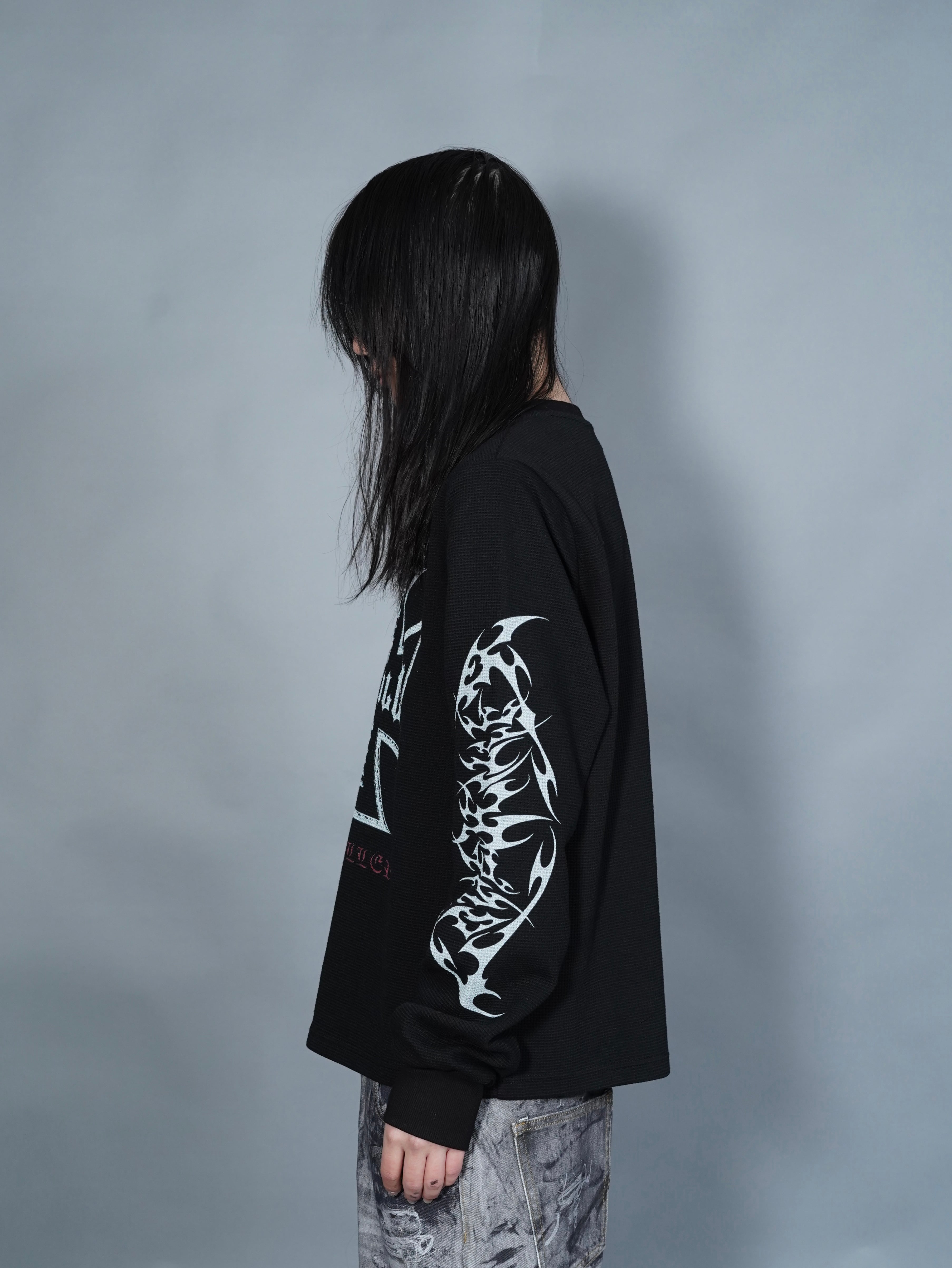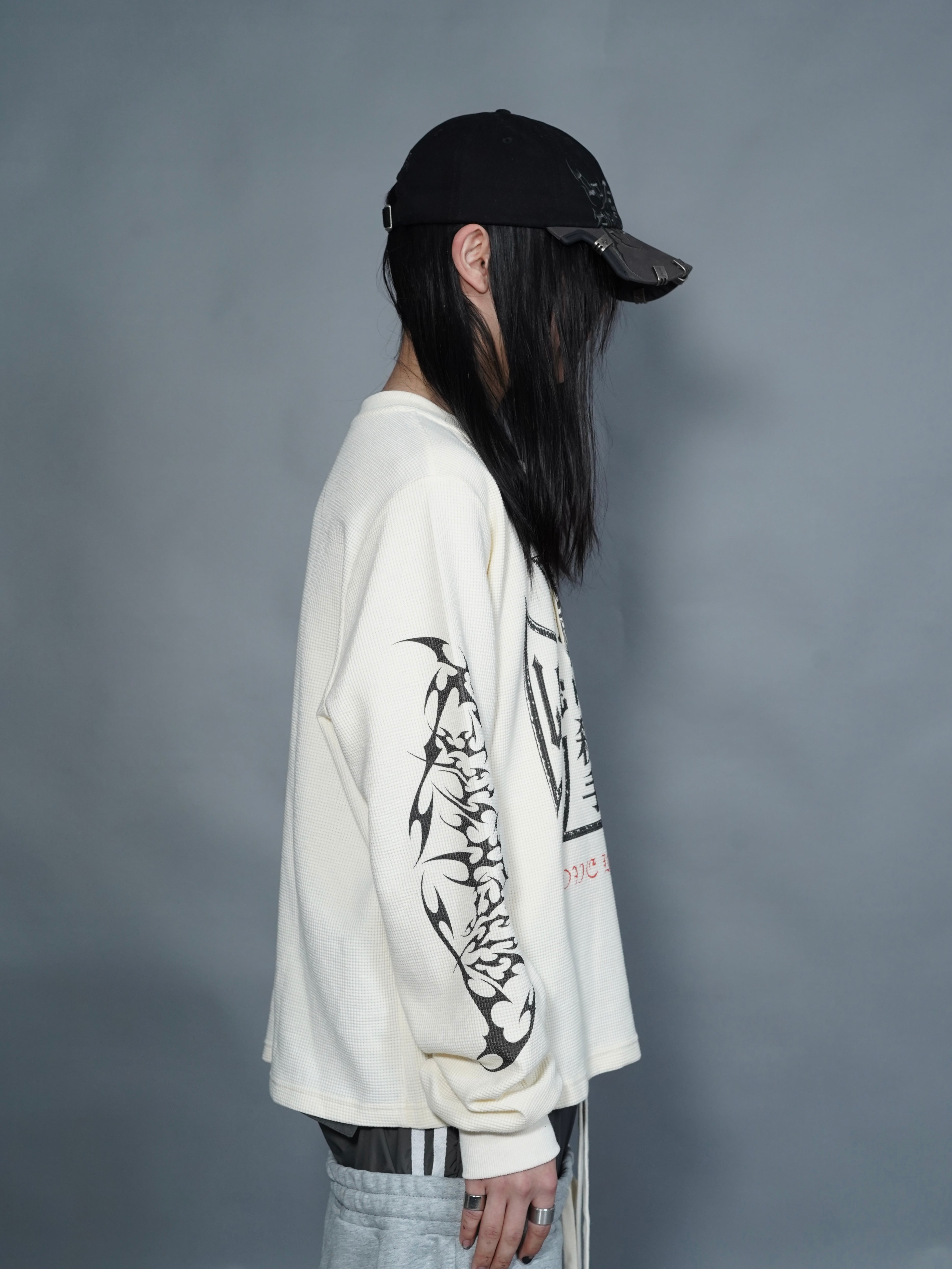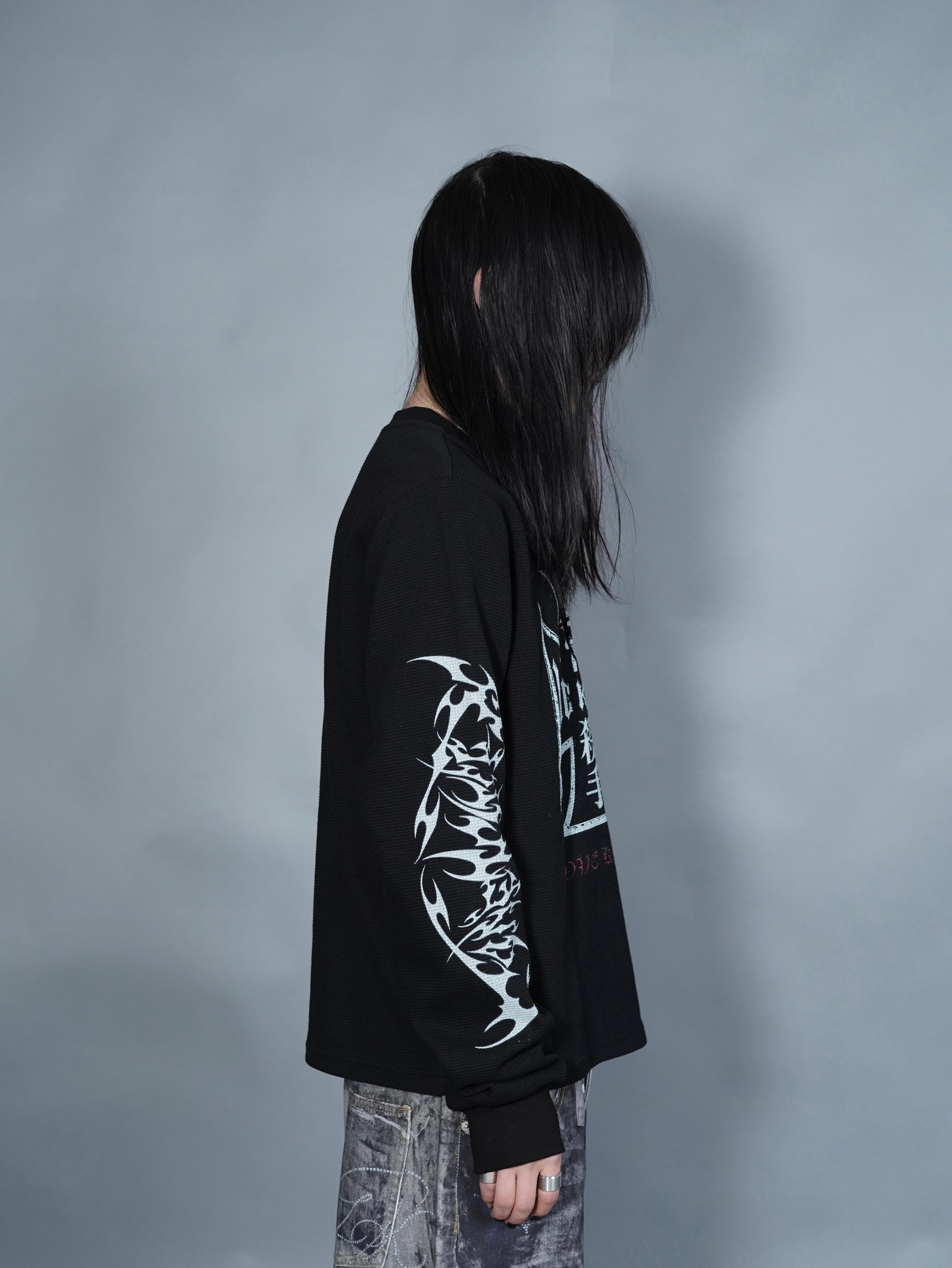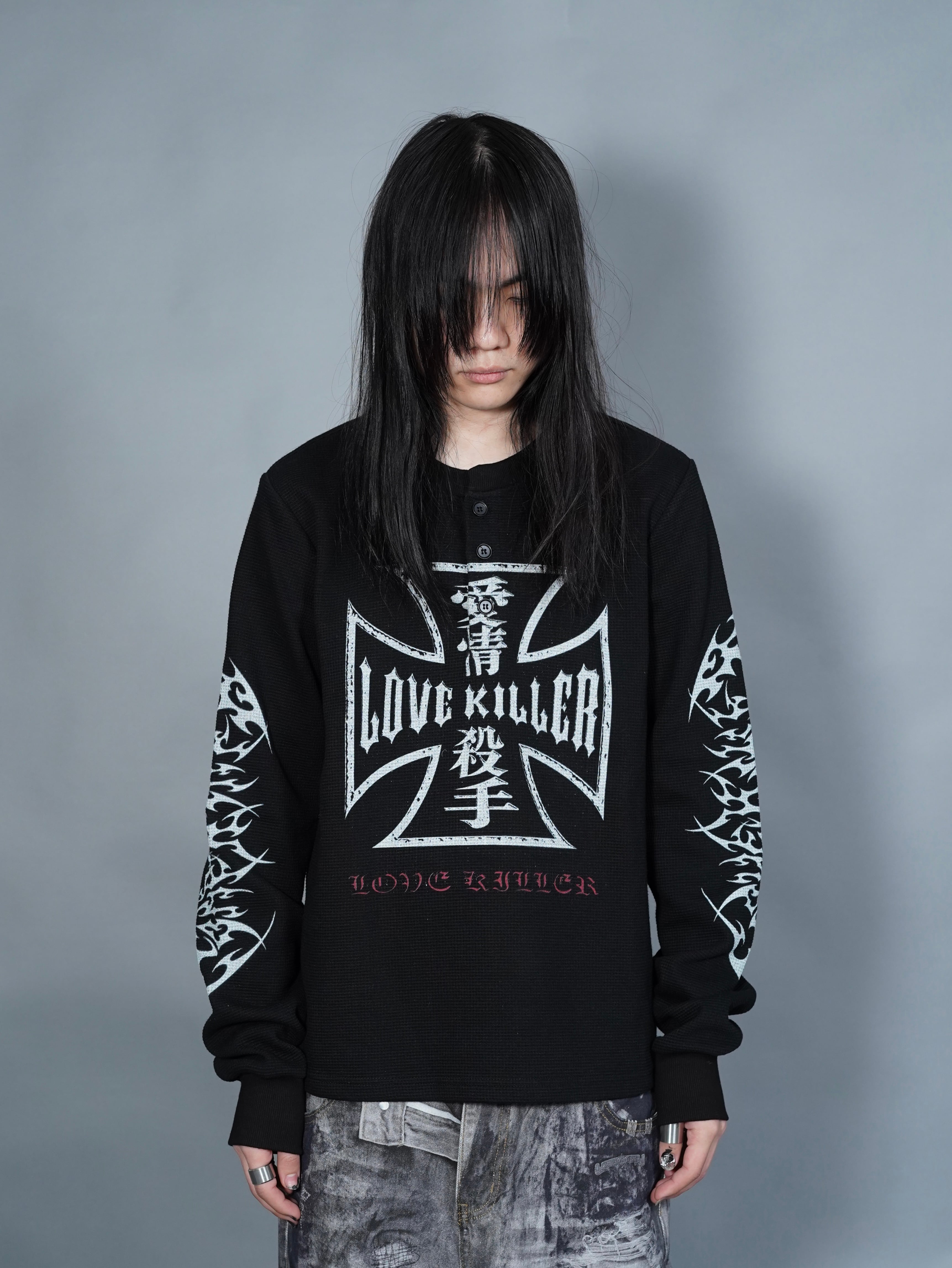 【LOVE KILLER】print thermal waffle long sleeve T-shirt