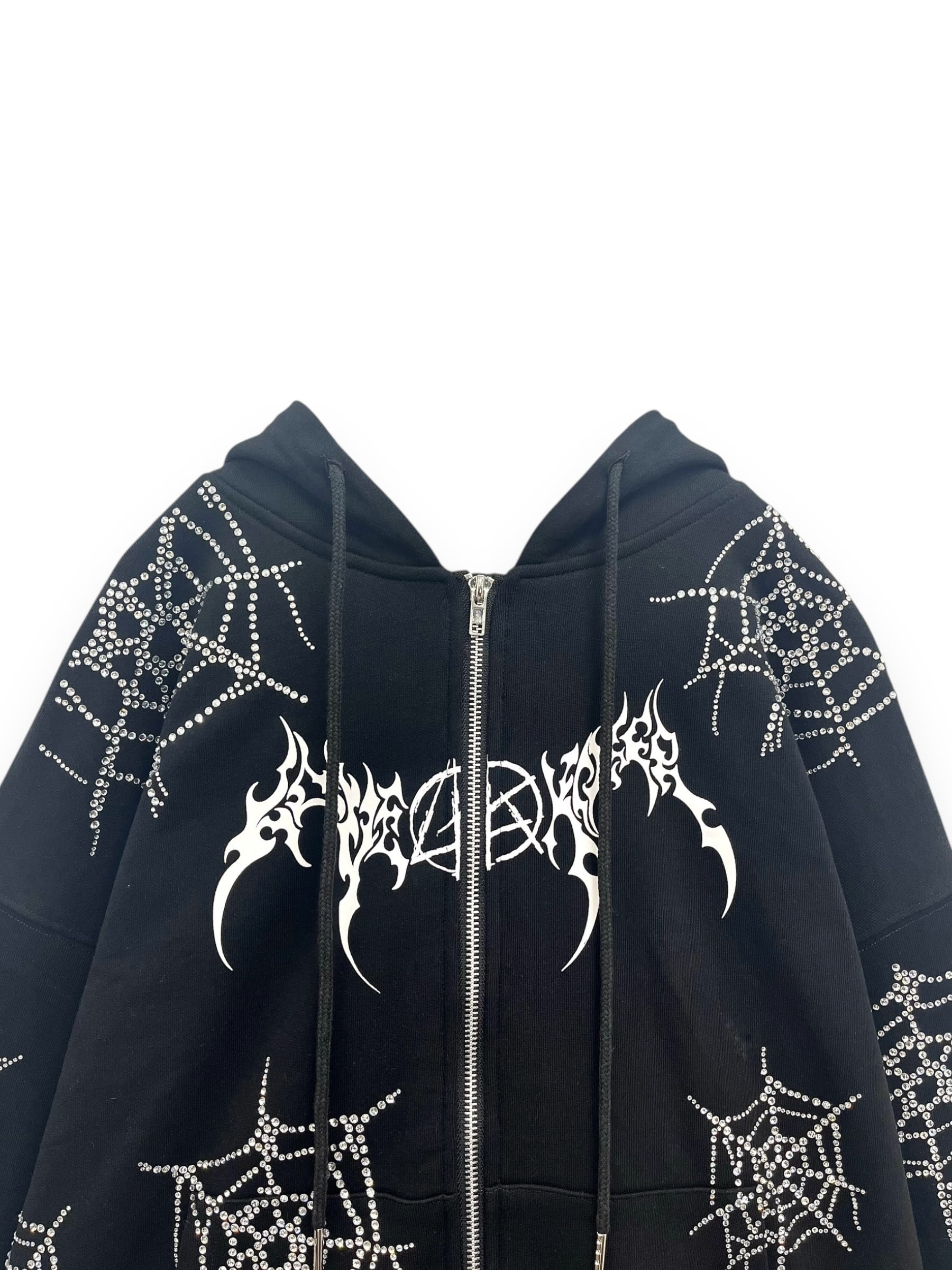 【LOVE KILLER】spiderweb rhinestone zip up hoodie